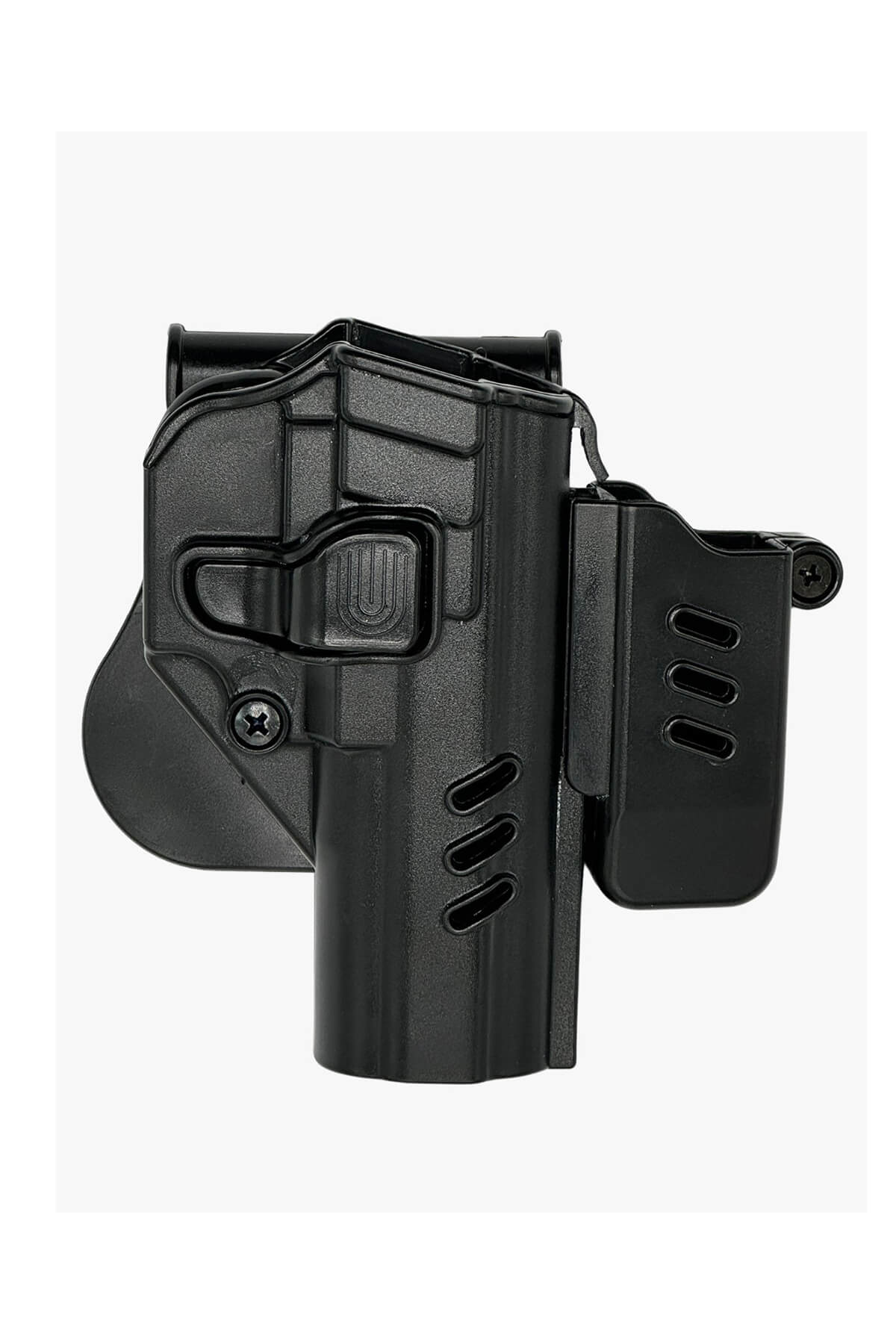 Yavuz 16 modeli ile uyumlu olarak tasarlanan bu şarjörlüklü taktik polimer tabanca kılıfı, ergonomik yapısı sayesinde kullanıcıya rahat ve verimli bir kullanım sunar. Tabanca ve şarjörlere hızlı erişim imkânı sağlayan tasarımı ile pratik kullanım avantajı sunar. Tetik kilit sistemi sayesinde güvenli kullanım desteklenir; mandala basılarak silah kolayca alınabilir. Dayanıklı polimer malzeme ile üretilmiş olup uzun ömürlü ve güvenilir bir kullanım sağlar. 360° dönebilen yapısı sayesinde istenilen pozisyona kolayca ayarlanabilir. Konforlu ve esnek tasarımı ile maksimum kullanım kolaylığı sunar.